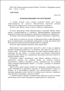 - Біла, І.М. (2011) Освітньо-виховні стратегії Японії Обдарована дитина, 10. pp. 51-58.