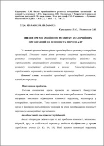 - Карамушка, Л.М. (2013) Influence of organizational development of commercial organizations on staff turnover Теоретичні і прикладні проблеми психології: Зб. наук. праць , 3 (32). pp. 114-121.