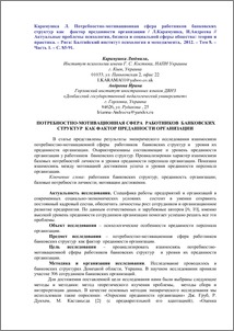 | Keywords: | motivation of achievement of success, material requirements, need for safety, social requirements, needs for self-relation, need for recognition, affective component of organizational commitment, continuance component of organizational commitment, normative component of organizational commitment |