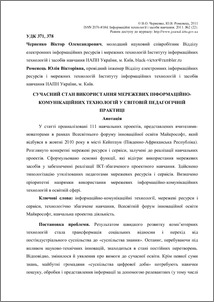 - Черненко, В.О. and Роменець, Ю.В. (2011) The current state of using web information and communication technologies within the world pedagogical practice Інформаційні технології і засоби навчання , 2 (22). ISSN 2076-8184