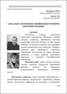 | Keywords: | hearing man, unhearing persons, social stereotypes of perception, phenomenon «other» or «another», stereotypification, communication, mechanisms of defence. |