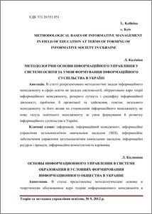 - Калініна, Л.М. (2012) Methodological bases of informative management in field of education at terms of informative society in Ukraine Теорія та методика управління освітою, 9.