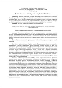 - Лапінський, В.В. (orcid.org/0000-0002-2832-4774) (2013) Electronic educational resources – didactic requirements and classification In: Eighth international conference “New information technologies in education for all: Lifelong Learning” . ITEA, м. Київ, Україна.
