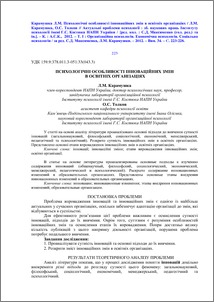 - Карамушка, Л.М. and Толков, О.С. (2012) Distinctive psychological characteristics of innovative changes in educational organizations Актуальні проблеми психології. – Т. І : Організаційна психологія. Економічна психологія. Соціальна психологія, 34. pp. 223-228. ISSN 2072-4772