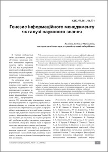 - Калініна, Л.М. (2009) Генезис інформаційного менеджменту як галузі наукового знання Стартегічні пріоритети, 4 (13). pp. 71-76.