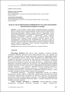 The article deals with the basic elements of an electronic library, digital library of research institutions, digital library processes, the functional requirements for a model of digital library of research institution. It is considered the concept of information and communication support of research activities, information systems, metadata, interoperability, models, information resources management. Specified the concept of resource management and proposed resource management functions. Given different approaches to the definition of the concept of metadata and presented the model building of scientific digital libraries. Highlighted aspects of interoperability. Presented by the level of interoperability. Approaches to interoperability of digital libraries are considered, as well as described their key characteristics. Emphesized the structural components of resource management for digital library of research institution and the model of resource management for digital library of research institution is proposed.