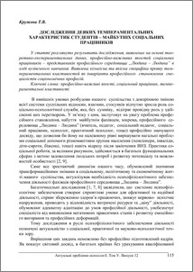У статті розглянуто результати дослідження, виявлених на основі теоретико-експериментальних даних, професійно-важливих якостей соціальних працівників – представників професійного середовища „Людина – Людина” в ході вузівського навчання. Виявлена кількісна та якісна специфіка прояву темпераментальних властивостей як інваріанти професійного становлення спеціалістів соціономічних професій.
