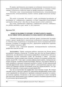 Стаття присвячена розгляду проблеми прояву властивостей темпераменту в процесі професійного становлення особистості соціального працівника. Основна увага зосереджена на теоретичному аналізі властивостей темпераменту, розкрита їх специфіка та роль у формуванні професійної спрямованості в процесі навчання у ВНЗ.
