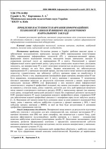 - Гуржій, А.М. and Карташова, Л.А. (2013) Problems of continuity of teaching information technology in schools and higher pedagogical educational institution Інформаційні технології в освіті (15). pp. 11-18. ISSN 1998-6939