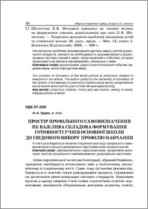 - Гуцан, Л.А. (2010) Space profile self-determination as an important component of readiness formation secondary school pupils a conscious choice of education profile Теоретико-методичні проблеми виховання дітей та учнівської молоді, 1 (14). pp. 58-66. ISSN ISBN 978-966-189-055-7