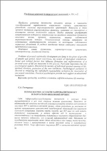 - Гончаренко, Світлана Анатоліївна (2013) Психологічні аспекти запровадження ІКТ в навчально-виховний процес Проблеми загальної та педагогічної психології (15). pp. 58-65. ISSN 2077-2289
