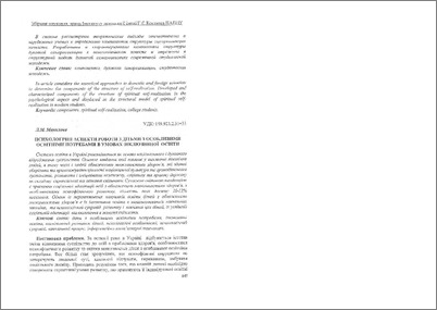 - Манилова, Лідія Михайлівна (2013) Психологічні аспекти роботи з дітьми з особливими освітніми потребами в умовах інклюзивної освіти Проблеми загальної та педагогічної психології. Збірник наукових праць Інститут психології імені Г.С. Костюка Національної АПН України , 2 (15). pp. 147-155. ISSN 2077-2289