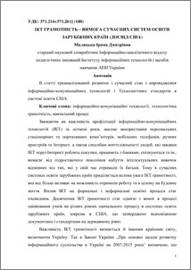 - Малицька, І.Д. (2009) ICT literacy – the requirement of foreign countries modern education systems (experience of the USA) Інформаційні технології в освіті. Збірник наукових праць. (4). pp. 243-249. ISSN 1998-6939