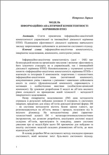 - Петренко, Лариса Михайлівна (2012) Model information and analytical competence manager In: Децентралізація управілння професійно-технічною освітою: теорія і практика (1). ІПТО НАПН України, Київ, pp. 63-67.