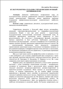 - Болгаріна, В.С. (2011) ultural component management functions VET managers In: Система підвищення функціональної компетентності керівників ПТНЗ , 1 (1). ІПТО НАПН України, м.Київ, Україна, pp. 22-25.
