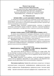 - Вовковінський, М.І. (2010) Professional adapting of a vocational training school leaver Професійна освіта: проблеми і перспективи (1). pp. 114-119. ISSN 978-966-354-381-9