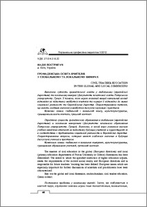 The essence of civil education in the global (European directives) and local (primary education departments of Patras University in Greece) dimensions has been determined. The extent to which the specified institution of higher education adjusts, meets the requirements of the current social reality and European directives and is responsible for future teachers’ training has been defined. European issues which are especially important for further discussions of scientists and practitioners have been characterized.