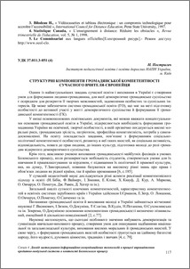 - Постригач, Н.О. (orcid.org/0000-0002-5433-2938) (2012) Structural components of civic competence Modern teacher Europeans In: Information and communication technology in modern education: experience, problems and prospects Серія педагогіки (3). Львівський державний університет безпеки життєдіяльності, м. Львів, Україна, pp. 117-120.