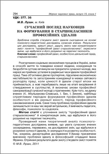 - Лузан, М.В. (2011) Сучасний погляд науковців на формування в старшокласників професійних ідеалів Теоретико-методичні проблеми виховання дітей та учнівської молоді, 1 (15). pp. 294-303. ISSN ІSBN 978-617-620-015-4