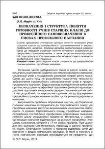 Статтю присвячено уточненню сутності поняття готовності учнів старших класів до професійного самовизначення в умовах профільного навчання. Зокрема автором запропоновано власний підхід до побудови структури поняття готовності особистості до професійного самовизначення, а також запропоновано відповідні цій структурі критерії та показники сформованості цього складного особистісного новоутворення.