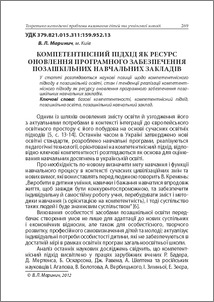 У статті розглядаються наукові позиції щодо компетентнісного підходу в позашкільній освіті, стан і тенденції реалізації компетентнісного підходу як ресурсу оновлення програмного забезпечення позашкільних навчальних закладів