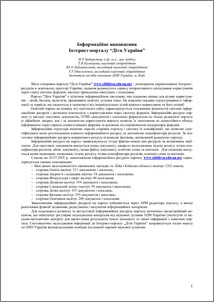 - Задорожна, Н.Т., Кузнецова, Т.В., Лабжинський, Ю.А. and Омельченко, Т.Г. (2005) The Internet-portal "Children of Ukraine" content In: Матеріали третьої міжнародної науково-методичної конференції "Інформатизація освіти України: стан, проблеми, перспективи" . Айлант, м. Херсон, Україна, pp. 4-5.