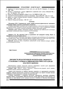 - Свириденко, С.О. (2013) Business educators to from conscious attitude senior rasidential care to health Проблеми освіти (77). pp. 216-220.
