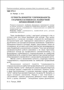 Розкрита актуальність проблеми формування спрямованості молоді на високу успішність у майбутній професійній діяльності, визначено сутність поняття “спрямованість старшокласників на майбутній професійний успіх”