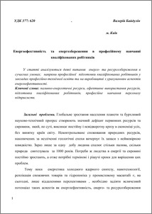 У статті аналізуються деякі питання енерго- та ресурсозбереження в сучасних умовах; напрями професійної підготовки кваліфікованих робітників у закладах професійно-технічної освіти та на виробництві з урахуванням аспектів енергоефективності