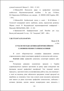 - Федун, Л.М. (2011) Сучасні методи активізації професійного самовизначення старшокласників Актуальні проблеми професійної орієнтації та професійного навчання населення. pp. 288-299. ISSN ISBN 978-617-649-006-7