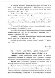 - Ткачук, І.І. (2011) Онтологія психолого-педагогічних досліджень проблеми професійного успіху особистості Актуальні проблеми професійної орієнтації та професійного навчання населення. pp. 264-273. ISSN ISBN 978-617-649-006-7