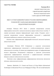 - Радченко, Ю.Л. (2013) Content and Essence of Using Modern Informational Technologies in Educational Process of a Pedagogical College Theoretical issues of culture, education and training (47). pp. 31-35.