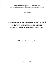 - Кутова, О.М. (2013) Естетичні основи розвитку педагогічної майстерності викладачів вищих педагогічних навчальних закладів ТОВ Тамподек ХХІ, м.Київ, Україна .
