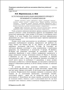 - Миропольська, Н.Є. (orcid.org/0000-0002-7469-5111) (2012) Естетизація навчально-виховного процесу основної і старшої школи Теоретико-методичні проблеми виховання дітей та учнівської молоді, 1 (16). pp. 192-198. ISSN ISBN 978-966-7406-72-1