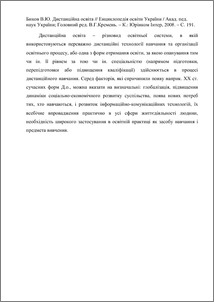 - Биков, В.Ю. (2008) Distance Education Енциклопедія освіти. p. 191. ISSN ISBN 978-966-667-281-3