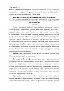 - Середа, Х.В. (orcid.org/0000-0002-4510-7173) (2011) Content-management of information system planning of scientific researches in Academy of pedagogical sciences of Ukraine Інформаційні технології і засоби навчання , 4 (24). ISSN 2076-8184