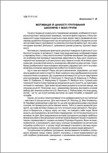 - Алєксєєнко, Т.Ф. (2010) Motivation and values of grouping of schoolboys in small groups Соціальна педагогіка: теорія та практика, 2 (4). pp. 24-30. ISSN 1817-3764