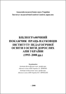 In a bibliographic index systematically publishing researchers, doctoral students, PhD students and seekers of the Institute of Teacher Education and adult education APS of Ukraine (to February 2007 - Institute of Pedagogy and Psychology of Professional Education APS of Ukraine) during 15 years (1993-2008 years)