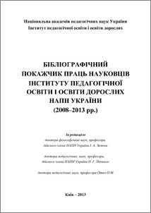 Bibliographic pointer systematic publication of academic staff,doctoral students, post-graduates and competitors of Institute of pedagogical and adult education NAPs of Ukraine for 5 years. 2008-2013 (Bibliographic index of works of research workers of the Institute of pedagogical and adult education NAPs of Ukraine. 1993-2008. concluded in 2008)