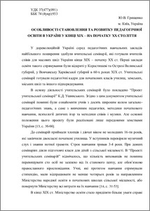 - Грищенко, Ю.В. (2010) Особливості становлення та розвитку педагогічної освіти в Україні у кінці ХІХ – на початку ХХ століття Сучасні інформаційні технології та інноваційні методики навчання в підготовці фахівців: методологія, теорія, досвід, проблеми. (24). pp. 30-34. ISSN ISBN 966-527-188-X