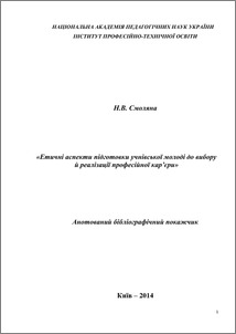 Смоляна, Н.В. (2013) Етичні аспекти підготовки учнівської молоді до вибору й реалізації професійної кар’єри . Інститут професійно-технічної освіти НАПН України, м.Київ, Україна.
