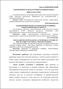 - Вовковінський, М.І. (2012) Regularities of pedagogical technique in work of the teacher vocational training school Науковий вісник Інституту професійно-технічної освіти. Професійна педагогіка (4). pp. 69-75. ISSN 2223 - 5752