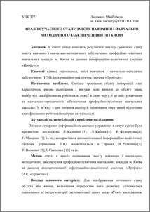 The author presents the results of analyzing the content of education and training and methodological support of vocational schools Kiev. Analysis was performed on the basis of information-analytical system "Profteh"