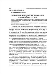 - Свириденко, С.О. (2010) Педагогічні технології виховання самостійності учня Теоретико-методичні проблеми виховання дітей та учнівської молоді, 1 (14). pp. 460-469. ISSN 978-966-189-055-7