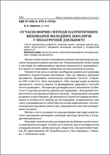 - Киричок, В.А. (2010) Сучасні форми і методи патріотичного виховання молодших школярів у позаурочній діяльності Теоретико-методичні проблеми виховання дітей та учнівської молоді (14). pp. 134-144. ISSN ISBN 978-966-189-055-7