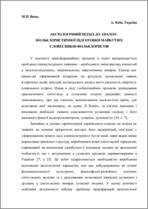 - Вовк, М.П. (2012) Аксіологічний підхід до аналізу фольклористичної підготовки майбутніх словесників-фольклористів Сучасні інформаційні технології та інноваційні методики навчання у підготовці фахівців: методологія, теорія, досвід, проблеми (30). pp. 316-321.