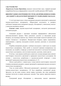 - Лаврентьєва, Г.П. (2008) Use of e-resources in research and pedagogical activity in educational institutions Інформаційні технології і засоби навчання, 2 (6). ISSN 2076-8184