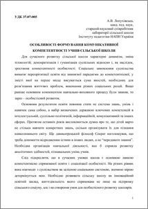 - Лопухівська, Алла Василівна (2012) Features of communicative competence of students in rural schools Психолого-педагогічні проблеми сільської школи, 3 (132). pp. 128-133.