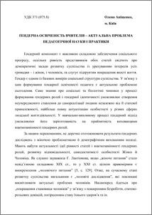 - Аніщенко, Олена Валеріївна (orcid.org/0000-0002-6145-2321) (2011) The gender formed of teachers is the issue of the day of pedagogical science and practice Adult Education: theory, experience and prospects (3). pp. 202-210. ISSN 2308-6386