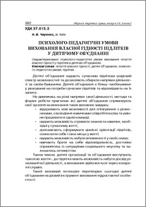 Охарактеризовано психолого-педагогічні умови виховання почуття власної гідності у підлітків в дитячих об’єднаннях.